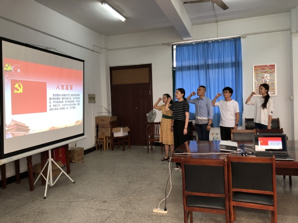 7月12日也是伟德国际英国毕业生毕业典礼的日子。毕业离校之际,在系部正式党员老师代表的带领下,面对鲜艳的党旗,系部新发展的学生党员举起右拳重温入党誓词,再一次接受党性洗礼;不断强化责任感和使命感,发挥大学生党员的先锋模范作用,以实际行动干好本职工作,在岗位上多奉献,争做优秀共产党员,以优异的成绩向建党98周年献礼。