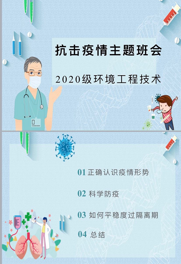 同学们,不要恐慌,我们身后有政府,有学校,有大量的专业的医疗人员队伍,解封指日可待,待隔离结束,我们一起在秦潭湖边看油菜花,拍照。加油,同学们!3月13日, 2020级环境工程技术专业辅导员赵佳佳老师在隔离点,与15位其它宾馆隔离的同学们连线,开展了一场特殊的线上防疫抗疫主题班会。辅导员与同学们一起交流各自的隔离情况,仔细询问大家的身体和思想状况,对此次疫情暴露出的班级管理问题认真做了梳理,对后期如何诊改做了详细探讨。同时,她呼吁大家科学合理地做好个人防护,养成防疫常态化的生活习惯。班会上,同学们也畅所欲言,纷纷表示隔离期间会努力调整心态,与家人保持信息畅通,积极配合医学隔离观察,以乐观向上的精神应对疫情。