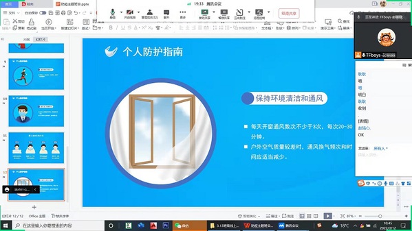 农林与服装学院在疫情期间,积极组织各班开展“云”上主题班会课,辅导员向学生传达 了目前安庆市及学校的疫情情况及各种有组织的抗疫措施及行动。叮嘱同学们要认真听从学校的安排和要求,提升自我管理、自我约束的能力,养成珍爱生命、健康生活的良好习惯。要多和家人沟通,交流,报告学校生活学习情况 ,让家人放心,共同建立、筑牢防疫的防线。