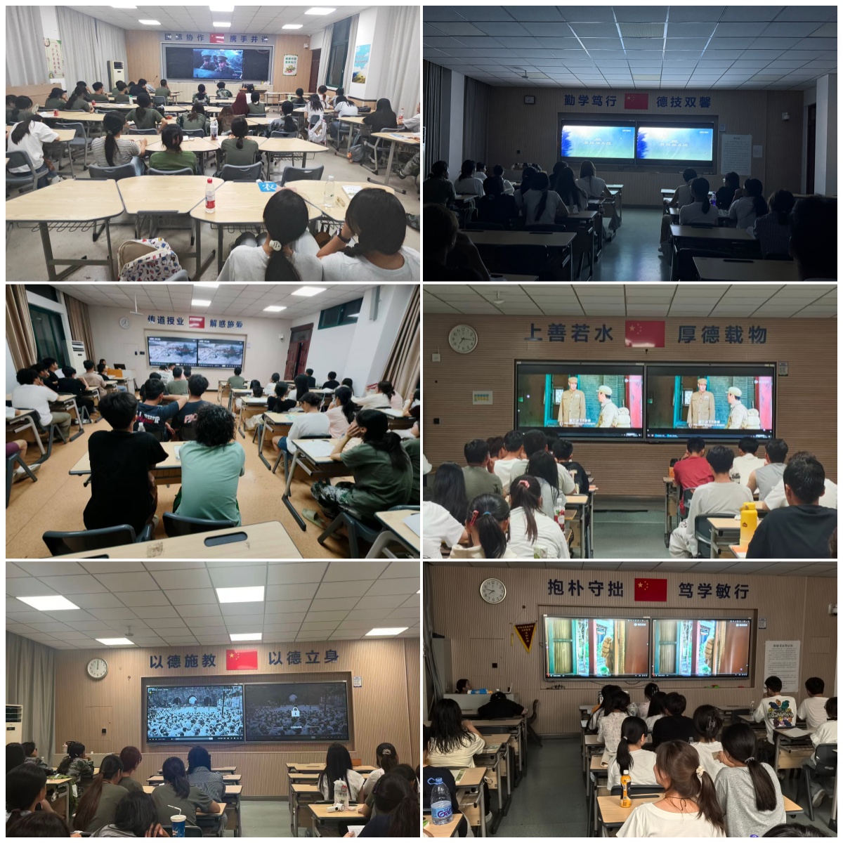 当晚,学院各新生班级教室秩序井然,同学们全神贯注,沉浸在一段段波澜壮阔的历史叙事中。影片《抵抗!抵抗!》展现了艰苦卓绝环境下中华儿女不屈不挠的抵抗精神,《志愿军:存亡之战》则深刻还原了志愿军战士为保家卫国、捍卫和平所付出的巨大牺牲和展现的英雄气概。影片中震撼人心的情节、鲜明生动的人物形象,深深触动了在场的每一位同学。