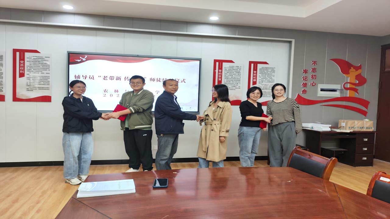 为加强辅导员队伍建设,助力新任辅导员快速适应岗位、熟悉业务,9月24日,农林与服装学院在会议室举行辅导员“传帮带”师徒结对仪式。学院学生工作负责人、全体辅导员参加。